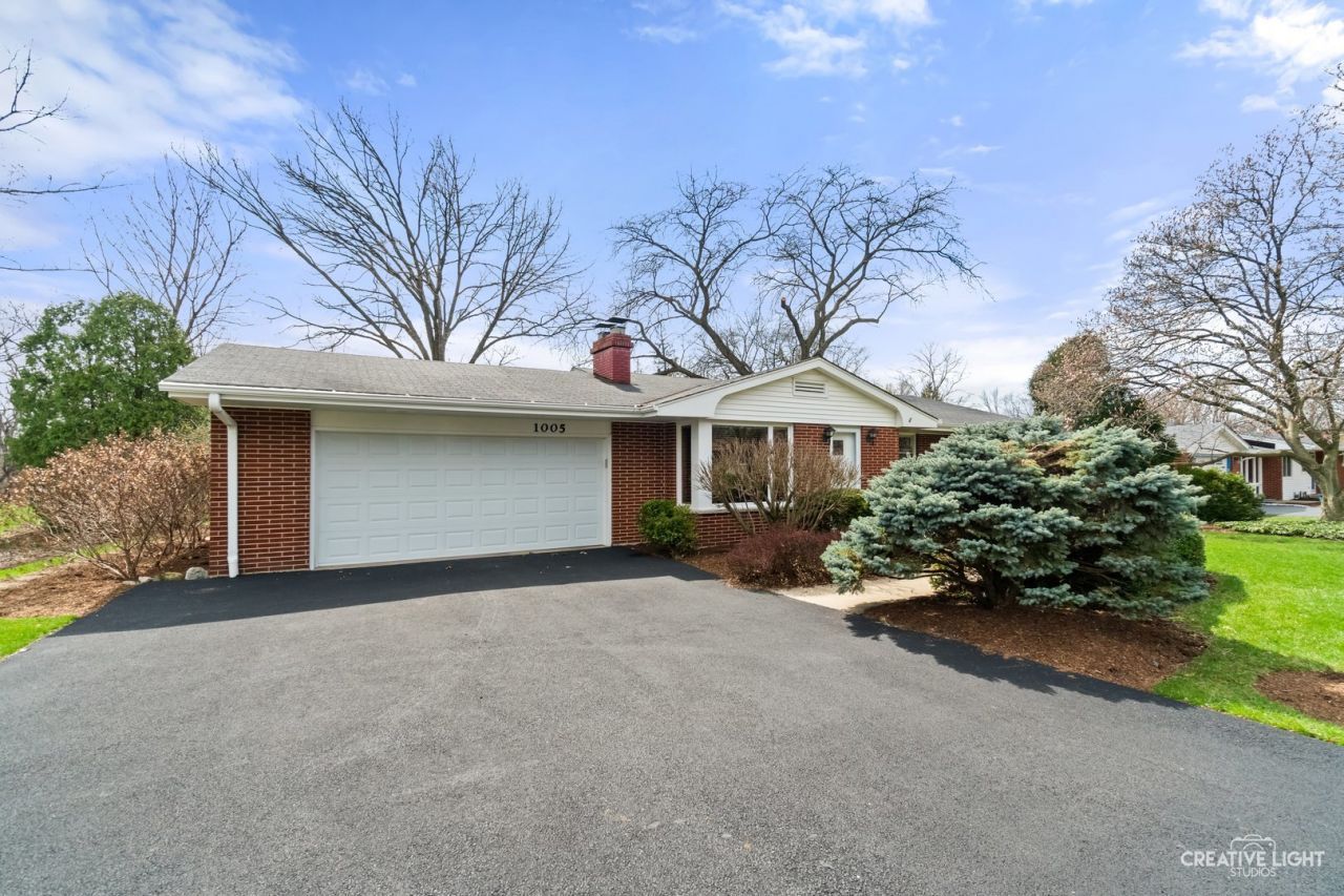 Hurry! Beautiful partial brick custom ranch on a serene approx 1/2 acre lot with meandering creek at the rear of the lot! Newer asphalt driveway! Covered front porch! Cozy living room with solid brick gas log fireplace and knotty pine accent wall! All newer kitchen with quartz countertops, stainless steel appliances, upgraded cabinetry and breakfast bar with overhead pendant lighting! Separate dining area with French door to the large custom deck! Gracious size bedrooms! 4th bedroom could be a family/flex room with picture window and great views! Huge finished walkout basement with rec room, office area, play area, full bath with updated shower and large unfinished area for storage! Lower level stone patio is wonderful for peaceful summer nights! Upgraded boiler and siding! Great location with quick access to I-90, train and shopping! Don't miss out!
