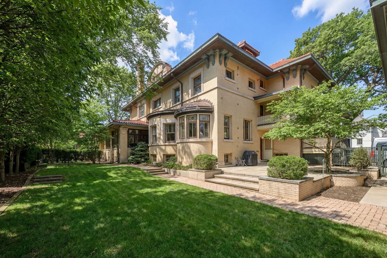 Originally built by a lumber baron in 1909, 1117 Forest Avenue is a beautiful, spacious, light-filled home that has been fully updated while preserving the stunning original details. Beautifully situated on tree-lined Forest Avenue just steps from Lake Michigan and Dempster Street Beach, this meticulously restored home includes sun-filled living spaces with generous room sizes, hardwood floors, stained glass windows, extensive custom millwork, and elegant architectural details. The stunning entry hall features original tile floors that match the tile in the expansive covered front porch. The millwork and beautiful staircase are in pristine condition along with the original stained glass panels in the foyer and stairwell. The main floor rooms are breathtaking. The living room focal point is a stunning fireplace with original tile and mantelpiece that beautifully integrates with the wood beamed ceiling. French doors lead to the lovely sunroom that features heated tile floors and beautiful architectural detail. Curved windows span the southern wall of the large dining room, which also features coffered ceilings, wood paneling, and a built-in bench. The recently redesigned chef's kitchen is outfitted with custom cabinetry, top-of-the line appliances, refrigerated drawers, and a center island with abundant workspace. Completing this floor are a library with built-in bookcases and stained glass windows, a charming breakfast room with light flooding in from the south-facing windows, convenient mudroom leading to the garage, a gorgeous powder room with Murano glass light fixtures, and a lovely front study/reception room with pocket doors allowing for privacy. The second floor includes 4 large bedrooms, 2 full and 1 half baths (all fully renovated) and a bright laundry room with plentiful storage. The current owners finished the third floor space to include 2 huge bedrooms, a wonderful large recreation room and an updated full bathroom. The basement has been partially finished, most notably the dance/exercise studio with wood floor and full mirrored wall. Enjoy outdoor living with a private yard, professional landscaping and expansive patio space. The renovated coach house offers exceptional versatility, ideal for use as a rental unit, guest house, or office. The lovely restored porte cochere is a convenient stopping point next to the house and a driveway adds convenience and plentiful extra parking. A rare opportunity to live just moments from Lake Michigan beaches, Metra and CTA transit, Northwestern University, parks, shops, and vibrant dining.