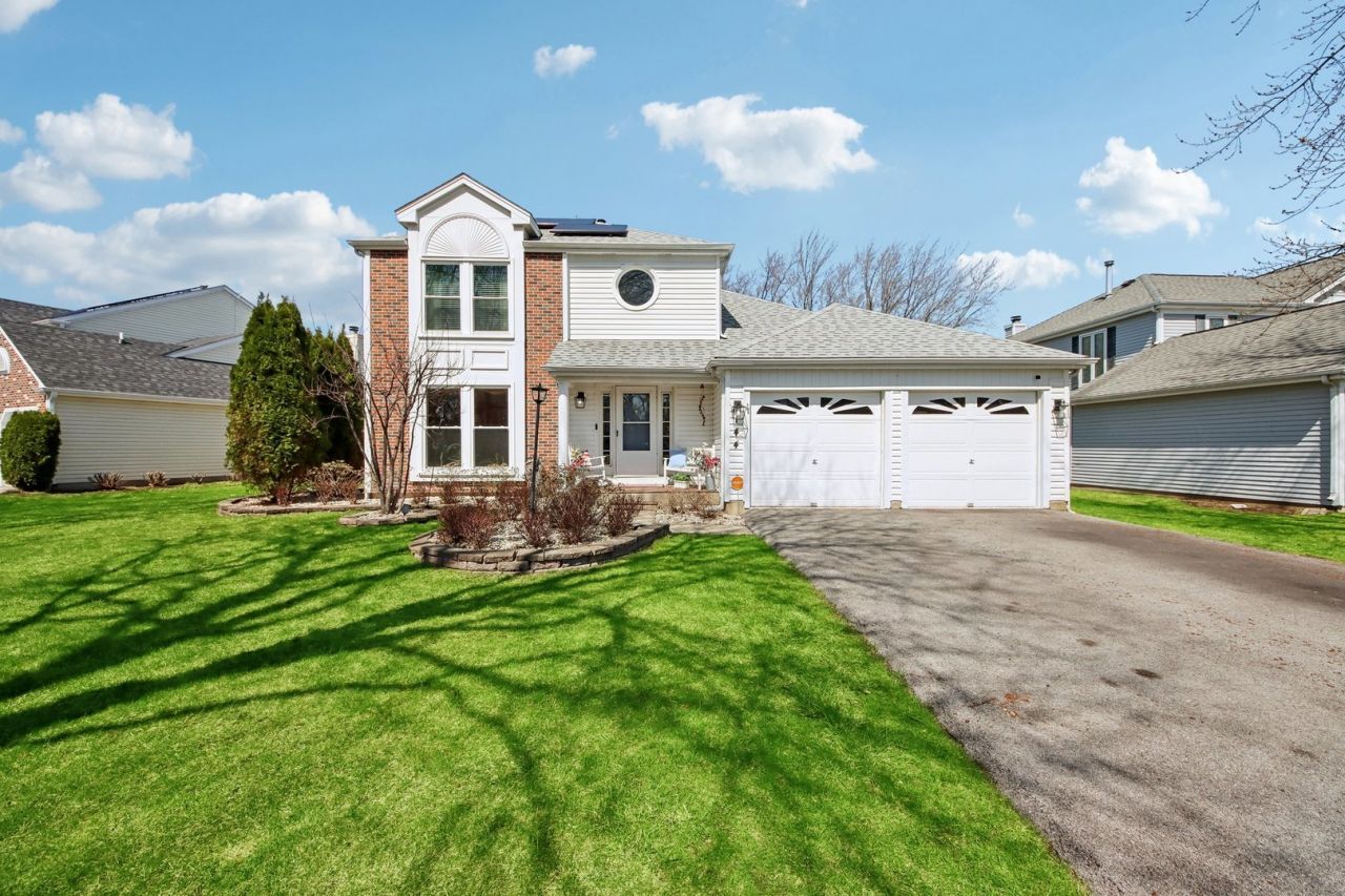 Welcome home to this stunning and meticulously maintained 4-bedroom Colonial, ideally located in the highly desirable Grosse Pointe Village subdivision and within the award-winning Stevenson High School district. Perfectly blending timeless elegance with modern updates, this home offers exceptional space, comfort, and scenic surroundings. Step into the impressive two-story foyer, highlighted by a skylight that fills the entryway with natural light and sets the tone for the rest of the home. The foyer flows seamlessly into formal living and dining rooms, ideal for hosting gatherings or enjoying quiet evenings at home. The spacious family room is the heart of the home, featuring a beautiful gas stone fireplace and expansive windows that showcase breathtaking views of the serene backyard and peaceful pond. This inviting space opens to a recently updated gourmet kitchen, thoughtfully designed with brand-new stainless steel appliances, granite countertops, a center island, and tall cabinetry offering abundant storage. The bright eating area features a charming bay window, perfect for enjoying your morning coffee while taking in the tranquil setting. Rich, neutral hardwood floors flow throughout the main living areas, adding warmth and continuity to the home's design. Upstairs, retreat to the luxurious primary suite, offering a private and relaxing escape complete with a spacious walk-in closet and a spa-inspired ensuite bath featuring a whirlpool tub, dual vanities, and a separate walk-in shower. Additional generously sized bedrooms provide flexibility for family, guests, or a home office, all complemented by a well-appointed shared bath. The fully finished basement expands your living space even further, perfect for entertaining, hosting guests, or creating a recreational area, complete with a full bathroom, a fourth bedroom, and ample storage. Step outside to your own private oasis featuring a large deck overlooking the beautifully landscaped yard, tranquil pond views, and a charming gazebo, ideal for relaxing or entertaining in a peaceful outdoor setting. Extensive recent updates provide true peace of mind, including a new roof (2023), all new windows (2024), new furnace and air conditioning (2024), updated driveway, enhanced landscaping, updated and new cabinetry in the upstairs laundry, and a brand-new laundry setup in the basement. Conveniently located with easy access to Route 60 and Route 45, as well as close proximity to restaurants, shopping, parks, and Metra, this home offers the perfect balance of luxury, convenience, and lifestyle. This is truly a move-in ready home that has been thoughtfully updated and exceptionally cared for, don't miss your opportunity to make it yours.