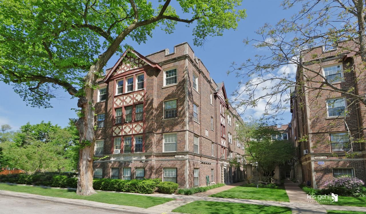 CHARMING, CHARACTER, HISTORIC, & WELL MAINTAINED. Just some words to describe this wonderful condo in St. Francis Courts. You can feel the history as you walk through the beautifully landscaped courtyard to the entrance. Then just take a minute and look at the stunning brick and stone front door. Enter into your awesome vintage condo. Tons of character surrounds you with arched walls, hardwood floors, radiators, ceiling fans, and sconces. The kitchen as been updated with new stainless appliances, tile backsplash, and granite counter tops. Cabinets are the traditional warm brown but in very good condition. Then open your kitchen door and step right outside to a lovely little patio where you can take in the peaceful view of mature trees and lots of green common space. Maybe sit outside on the bench with a good book or your coffee. The dining room is a perfect size for small or larger gatherings and is right off the kitchen. The living room has lots of natural light and extends right into the dining room. The bedroom is warm and inviting with hardwood floors, ceiling fan and the space could easily be fine for a little work at home desk if needed. Then there's the adorable vintage bathroom. Tub, shower and pedestal sink with throw back tile in soft green and white. What's not to love about this lovely unit? Pet friendly, close to shopping, 10 min. to the metra and a 20 min brisk walk to the lake. Shorter if you run in the summer months. So don't miss this opportunity to call this lovely condo in Evanston your home. You won't be disappointed.